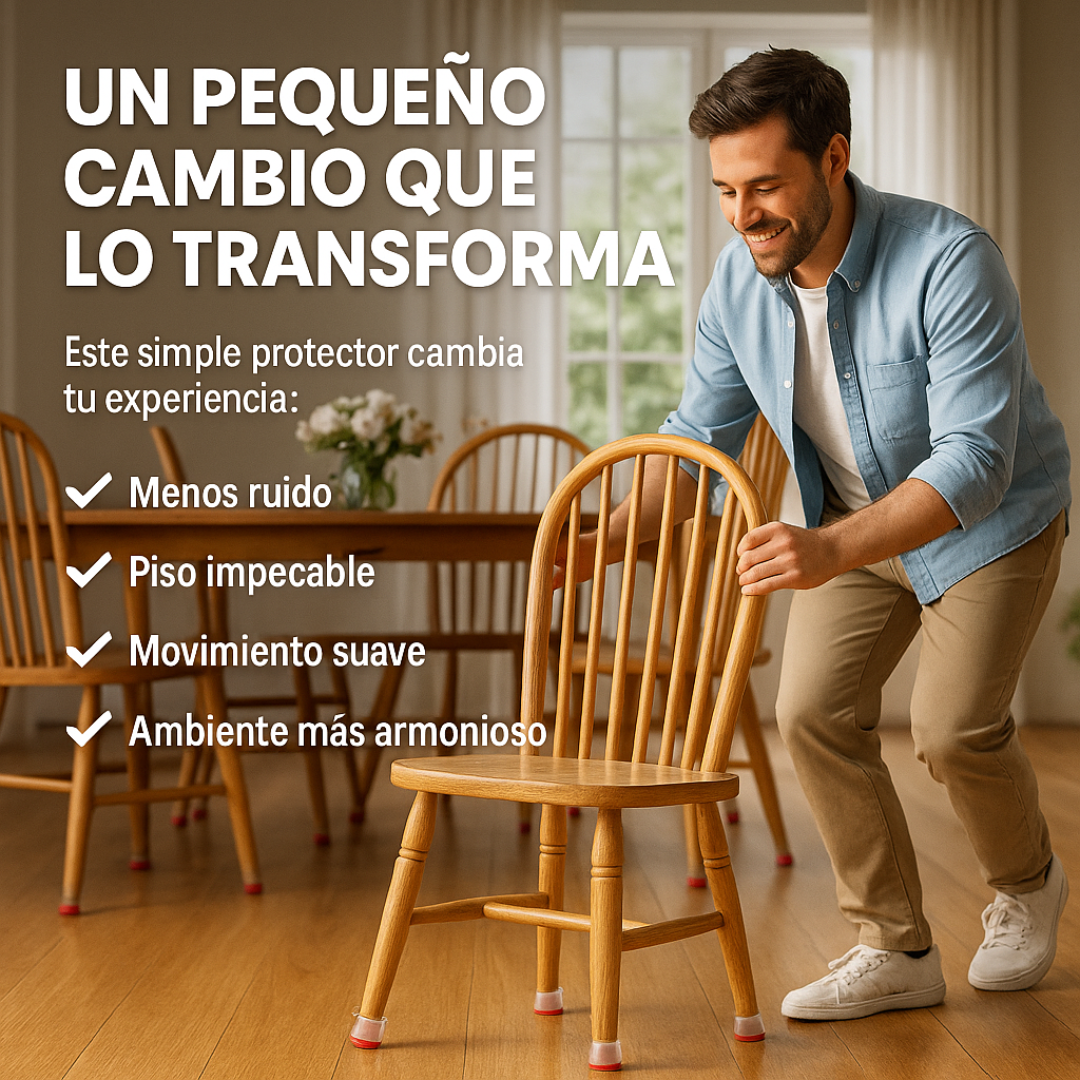 Con nuestros protectores de silicona, tus muebles se deslizan suavemente y tus pisos se mantienen impecables.